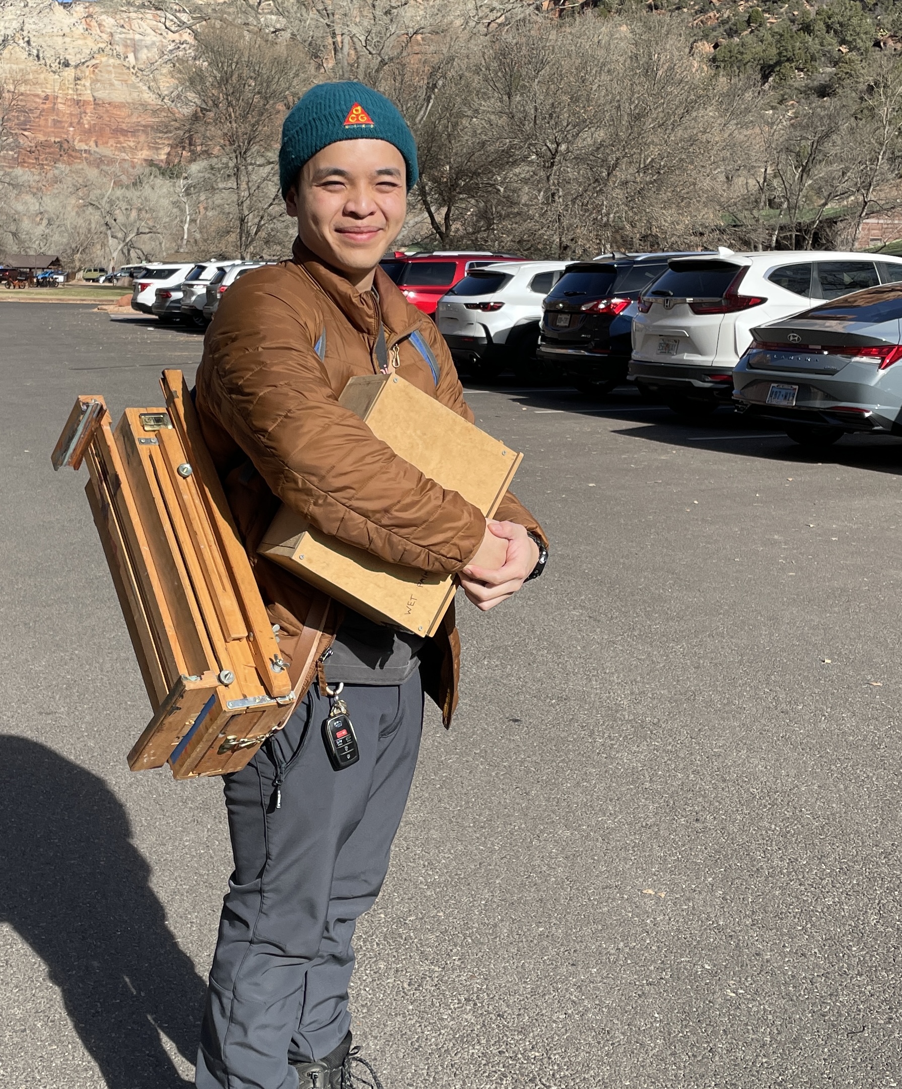 I am currently an electrical engineer at Quartus Engineering. I got my B.S. and M.S. degrees from UC San Diego, where I was a researcher at the Integrated Electronics and Biointerfaces Lab supervised by Dr. Shadi Dayeh. If I'm not home hanging out with my amazing partner, playing guitar, tending my garden, admiring my tarantulas, or decorating fish tanks, I'm probably somewhere really far away with my portable easle, painting nature in front of me.